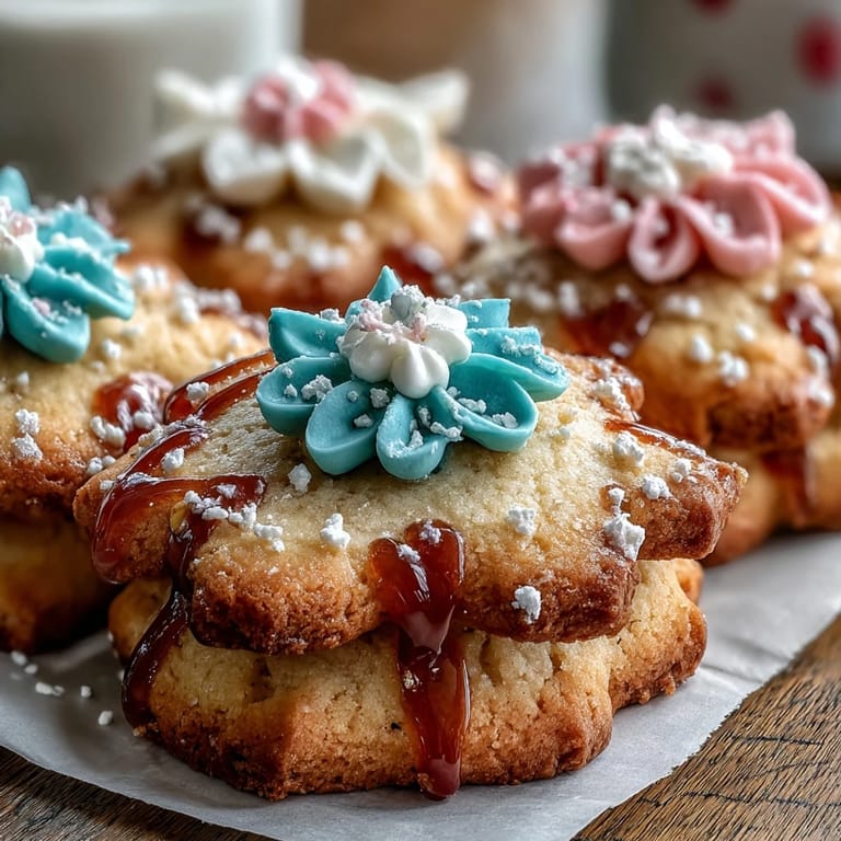 I made four dozen of these for my friend's baby reveal party, staying up the night before to pipe flowers while half-watching a comfort show. My kitchen smelled like vanilla and butter, my hands ached pleasantly, and somewhere around cookie thirty-five, I stopped worrying about perfection and started enjoying the rhythm of it. When my friend's mom saw them arranged on a tiered stand, she actually gasped—not because they were flawless, but because they felt like love made edible.