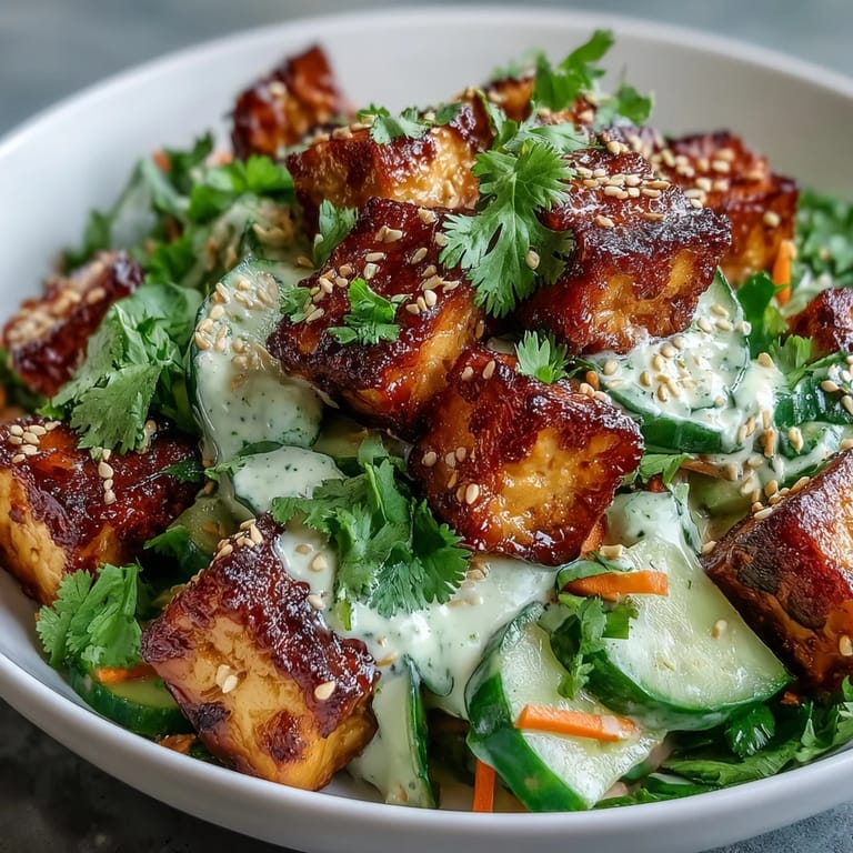 Save to Pinterest The first time I nailed crispy tofu, I actually burned it twice before figuring out the trick was patience and a really hot pan. This salad came together one sticky summer afternoon when I craved something cold, crunchy, and filling but didn't want to turn on the oven. The creamy sesame-ginger dressing clung to every slice of cucumber, and those golden tofu cubes added just the right amount of heft. Now it's my go-to when the weather turns muggy and I need something that feels like a treat but doesn't weigh me down. It's become the dish I make when I want to impress without breaking a sweat.