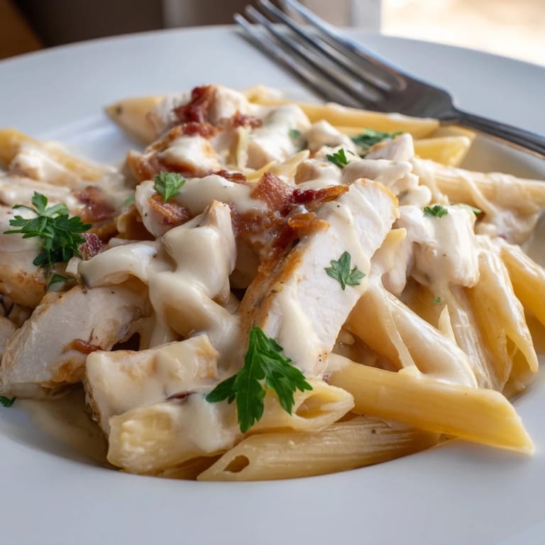 Save to Pinterest The bacon was already crackling in the pan when my neighbor knocked, asking if I had a cup of flour. I didn't, but the smell drifting through my open window must have been irresistible because she lingered, watching me toss chicken into the skillet. That night I learned that sometimes the best meals aren't planned, they're the ones you throw together on a Wednesday and end up making every other week. This creamy chicken bacon penne became that dish for me, the kind you crave after a long day when you need something warm, filling, and ridiculously satisfying.