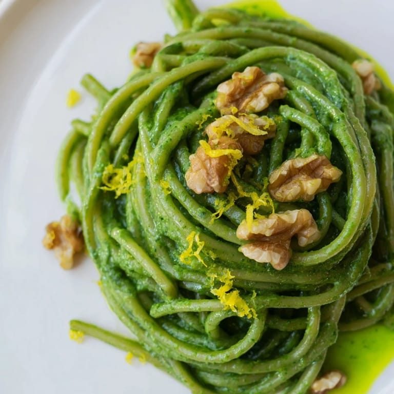 Save to Pinterest The smell of toasting walnuts always pulls me into the kitchen, no matter what else I'm doing. I discovered this sauce on a Tuesday night when I had nothing but spinach, a bag of walnuts, and some pasta sitting in the pantry. Now it's become my go-to when I want something that feels indulgent but actually takes minutes to throw together. The way the sauce turns that impossibly vibrant green still makes me smile every single time.