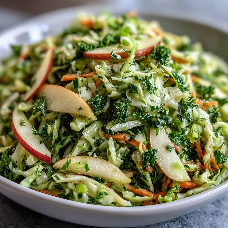 Save to Pinterest My neighbor handed me a container of this slaw at a summer block party, and I was skeptical—until I tasted it. The crispness of fresh cabbage meeting the slight tartness of apple and that honey-mustard dressing just clicked in a way that felt almost too simple to be that good. Since then, I've made it dozens of times, tweaking it slightly depending on what's in my crisper drawer, and it's become the side dish I reach for when I need something that doesn't require cooking but feels genuinely thoughtful.