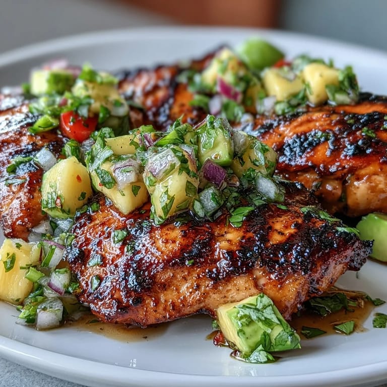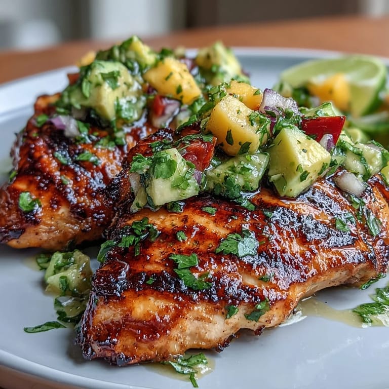 Save to Pinterest There's something about grilling chicken on a summer evening that makes everything feel simpler. One July afternoon, my neighbor wandered over with a bag of mangoes from their farmers market haul, and instead of the usual grilled chicken routine, we turned it into something bright and unexpected. That salsa came together in minutes, yet it tasted like we'd been planning it all week. Now whenever I fire up the grill, I find myself reaching for those same ingredients because they just work.