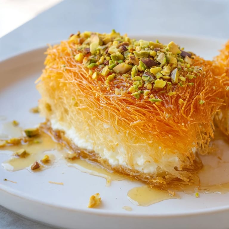 Save to Pinterest Making knafeh is less about precision and more about intuition—the cheese should be creamy but not liquid, the syrup should smell floral and feel light, and the pastry should emerge golden and singing. When you pull it from the oven and invert it onto the platter, you'll know instantly if you've done it right.