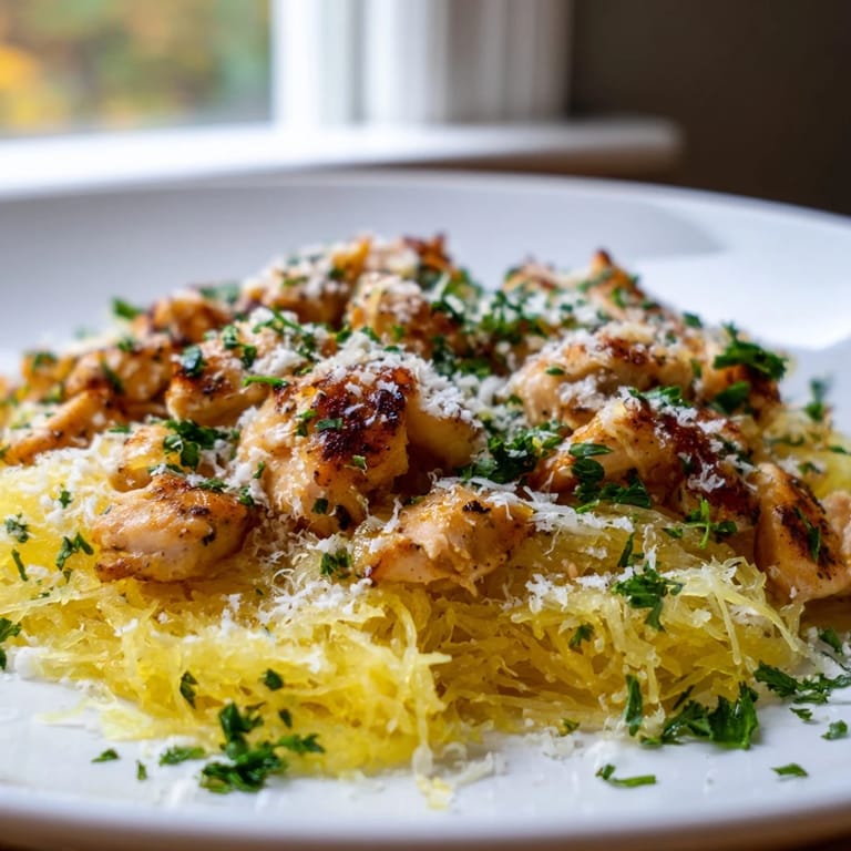 Save to Pinterest My kitchen experiments with spaghetti squash started during a phase where I was trying to recreate pasta dishes without the heavy carbs. That first attempt was a disaster—the squash was waterlogged and flavorless. But this lemon garlic chicken version became the turning point that made me actually crave squash instead of seeing it as a sad substitute.