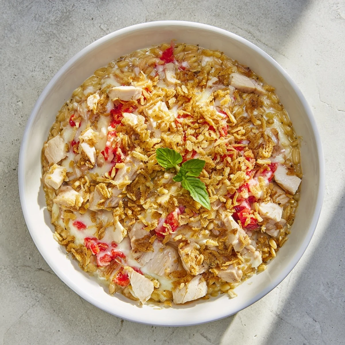 If you're out of orzo, ditalini or even broken-up angel hair works in a pinch, just keep an eye on the texture so it doesn't turn soggy. I've also swapped the chicken for shredded rotisserie when I'm too tired to cook, and honestly no one notices. For a vegetarian twist, try sautéed mushrooms and spinach in place of the chicken, and add a pinch of nutmeg to the cream.