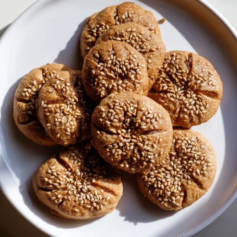 - Roll each ball in sesame seeds, pressing lightly so they cling to the dough without crushing the cookie. The seeds should coat the entire surface evenly, creating both visual appeal and a subtle nutty texture.