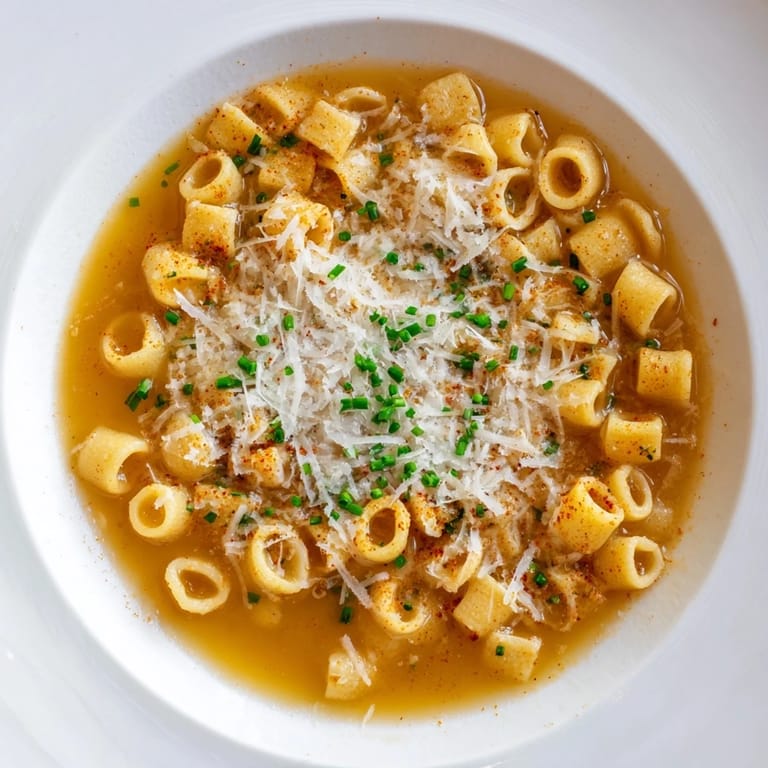I first made this for a group of friends who showed up unannounced on a rainy evening. I had almost nothing in the pantry except dry pasta, some parmesan rinds I was saving, and a box of vegetable broth. What started as a joke, me serving cereal bowls with ladles, turned into the highlight of the night. Everyone went back for seconds, and one friend still texts me asking when Im making those weird pasta chips again.