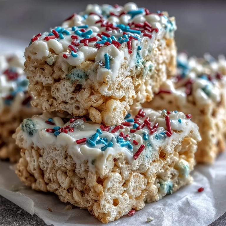 I'll never forget the year my sister brought these to our family cookout, and my five-year-old nephew became convinced they were actual American flag candy—he ate three pieces before anyone could explain the patriotic theme. His excitement was so genuine that I realized this recipe isn't just about dessert; it's about creating a moment that sticks with people. Now whenever I make a batch, I'm not just combining marshmallows and cereal; I'm making memories that taste like summer.