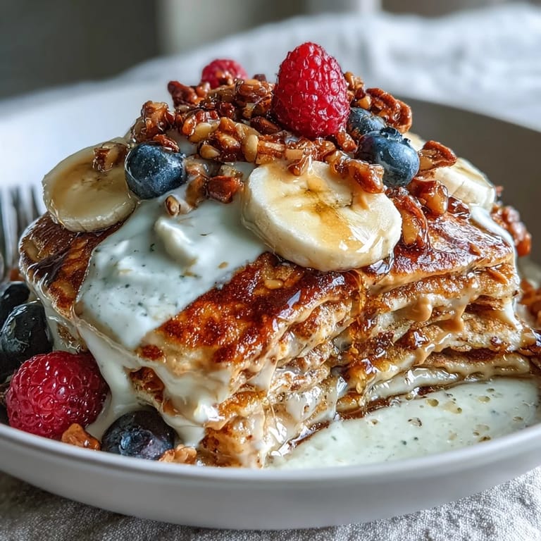 Save to Pinterest My roommate used to tease me about eating pancakes from a mixing bowl, but once she tried this herself on a Sunday morning after our long run, she got it. The warm oat pancake soaks up the cold yogurt just enough to create these pockets of creamy sweetness, and the berries burst against the soft, protein-packed base. Its messy, its filling, and it feels like breakfast and dessert had a very healthy baby. I make this whenever I need something that tastes indulgent but keeps me full until lunch without the sugar crash.