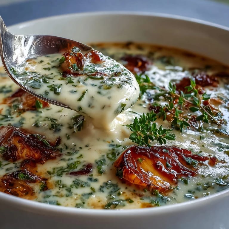 Save to Pinterest The first batch of roasted garlic and herb soup I ever made was during a particularly brutal winter storm. As wind howled outside my kitchen window, the apartment filled with that intoxicating aroma of garlic slowly caramelizing in the oven. I remember how the golden cloves practically melted between my fingers when I squeezed them from their papery skins. Something magical happens when garlic roasts - its sharpness transforms into this mellow, almost sweet richness that became the soul of this soup.
