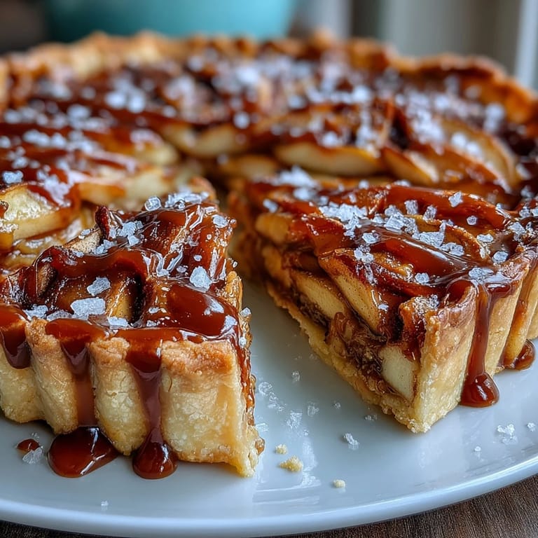 Save to Pinterest There's a particular moment in autumn when the kitchen smells like cinnamon and caramel at the same time, and you know someone's about to experience something special. I was testing recipes one crisp October afternoon, standing at my stove with a wooden spoon, watching sugar transform into liquid amber, when I realized what was missing from my dessert repertoire: a tart that felt both elegant and comforting, with that unexpected salt-and-sweet dialogue that makes people pause mid-bite. This salted caramel apple tart became my answer, a French-American hybrid that somehow tastes like someone's been baking it for generations.
