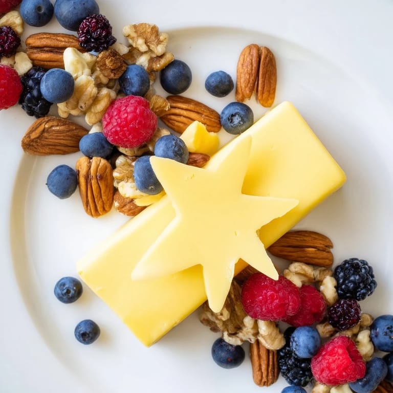 I've tested this with several cheese types, and the key is finding something firm enough to hold the star shape without being so hard it shatters when you cut it. Aged cheddar, gouda, and manchego all work beautifully because they have enough structure and a subtle flavor that won't overwhelm the delicate berries. Soft cheeses like brie or camembert will lose their shape under their own weight, so save those for a different style of board.