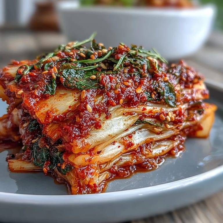 Save to Pinterest My first jar of kimchi sat on my kitchen counter for three days while I kept opening the fridge to check if it was ready, convinced I'd somehow ruined it. The smell alone—garlicky, pungent, alive—told me something was working. When I finally tasted it, that perfect balance of heat, sourness, and umami hit different than anything store-bought, and I understood why my Korean friends always had a jar going. Now kimchi isn't just a side dish in my kitchen; it's a tiny fermentation project that teaches patience every single time.