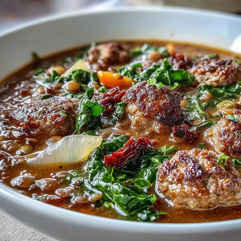 Save to Pinterest There's something about the smell of spicy sausage hitting hot oil that makes a kitchen feel instantly alive. I was scrolling through my phone one October evening, half-listening to my roommate complain about the weather turning cold, when I decided to throw together whatever was lurking in the pantry. Lentils, kale, a forgotten package of sausage—nothing fancy, but somehow it became the kind of soup that made people actually pause between spoonfuls. That first batch taught me that the best comfort food often comes from working with what you have, not what a recipe demands.