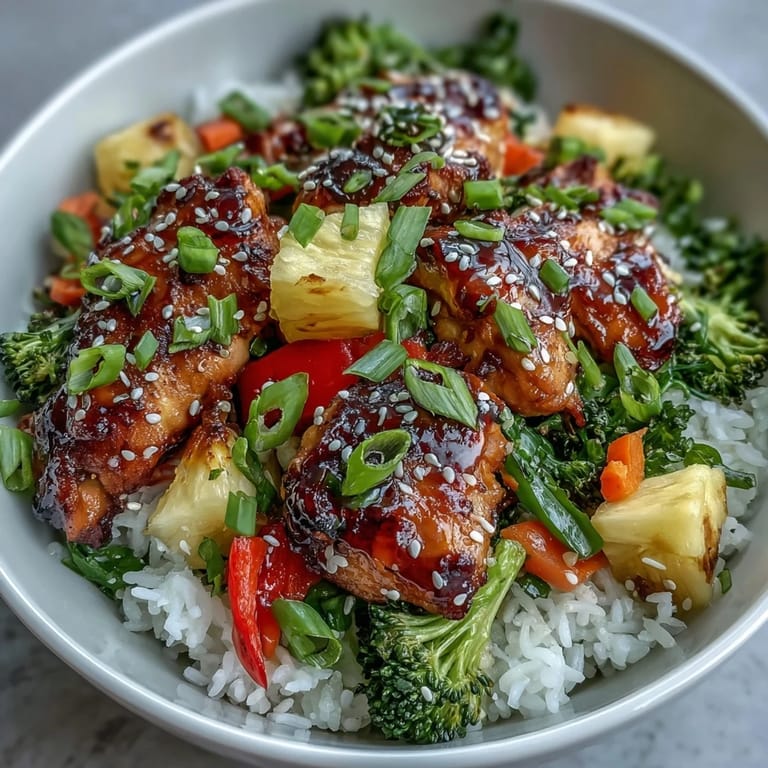 Save to Pinterest The moment when everything comes together in the bowl—the steam rising from hot rice, the chicken glistening with sauce, the fresh crunch of pineapple—feels like small magic. It's the kind of dish that makes people slow down and actually taste their dinner instead of rushing through.