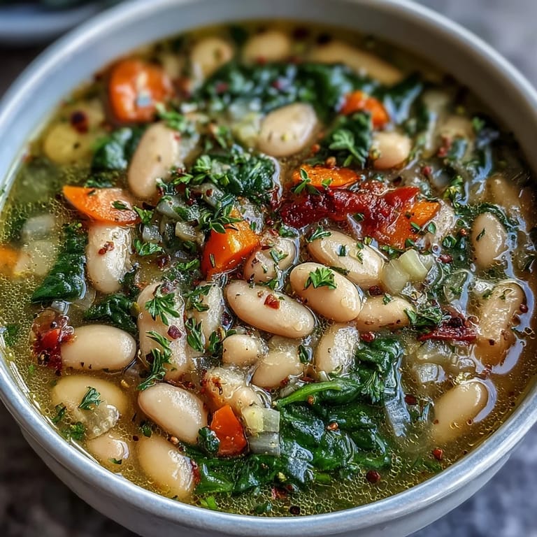 Save to Pinterest There's something about the smell of sautéed carrots and celery that pulls me straight back to my friend Marco's kitchen in Florence, where he taught me that the best soups don't need fancy ingredients—just patience and good olive oil. He'd say the soffritto is where the magic starts, and honestly, he was right. This Tuscan white bean and spinach soup became my go-to when I wanted something that tasted like I'd spent all day cooking but actually took less than an hour. It's the kind of dish that feels like a warm hug after a long day, and somehow it tastes even better the next morning.