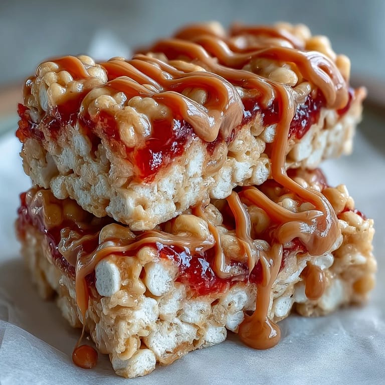 Save to Pinterest A fun, nostalgic twist on classic Rice Krispie treats, these High-Protein PB&J Rice Krispie Bars are packed with protein and layered with a creamy peanut butter drizzle and sweet jelly swirls. Whether you need a quick pick-me-up or a post-workout recovery snack, these bars offer the perfect balance of sweetness and crunch in every bite.